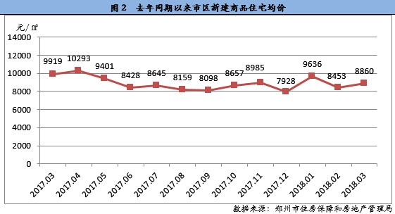 2018年3月份,市區新建商品住宅均價為8860元/平方米,環比上月的8453元/平方米上漲4.81%,比去年同期的9919元/平方米下降10.68%;第一季度,市區新建商品住宅均價為9048元/平方米,比去年同期下降9.22%。