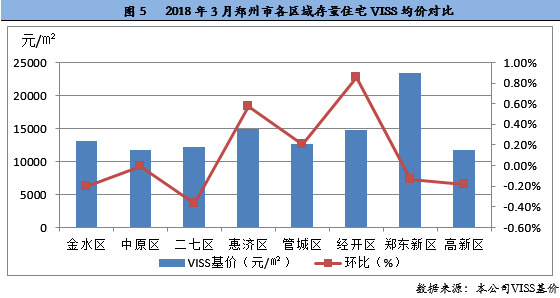 存量住房均價:根據VISS系統監測的鄭州市8個區域,共計2341個存量住宅小區均價,采用定基定權重的方式計算得出,以保證各期價格的可比性。